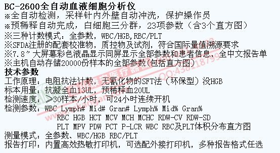 血球分析儀_邁瑞BC-2600_血常規_全自動